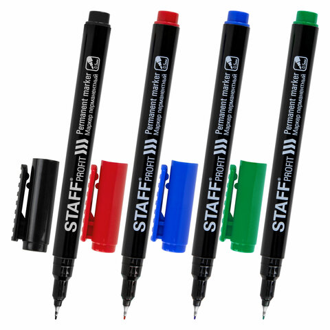 Маркер перманентный НАБОР 4 ЦВЕТА, STAFF "Profit PM-105", тонкий металлический наконечник 0,5 мм, 152173