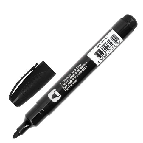 Маркер перманентный ОФИСМАГ, ЧЕРНЫЙ, круглый наконечник, 3 мм, с клипом, 151197