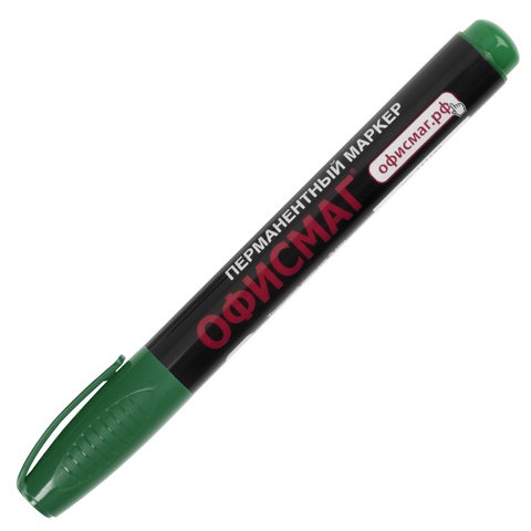 Маркер перманентный ОФИСМАГ, ЗЕЛЕНЫЙ, круглый наконечник, 3 мм, с клипом, 151200