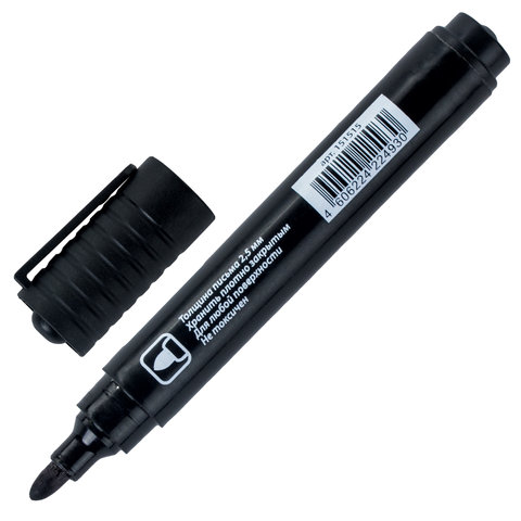 Маркер перманентный ОФИСНАЯ ПЛАНЕТА, ЧЕРНЫЙ, круглый наконечник, 2,5 мм, 151515
