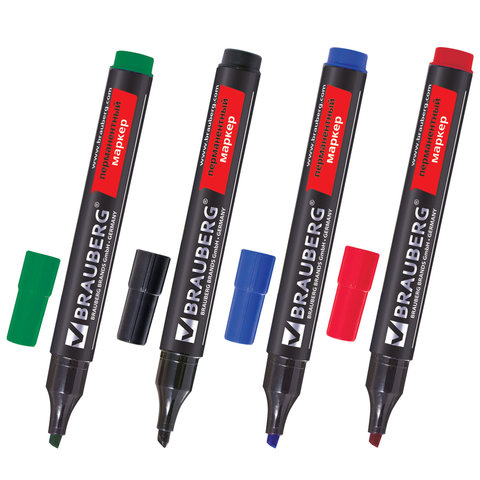 Маркеры перманентные BRAUBERG "Contract", НАБОР 4 ЦВЕТА, скошенный наконечник, 1-5 мм, 150473