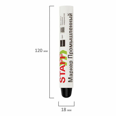 Маркер для промышленной маркировки STAFF ПМ-100 на полимерной основе предназначен для любых типов поверхности: металл, дерево, бетон, пластик, стекло, керамика, резина; пишет по сухим, влажным, масляным, грязным, ржавым, грубым или гладким поверхностям.