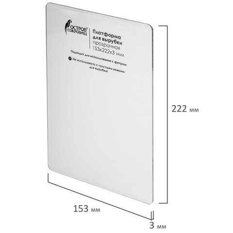 Платформа для машинки для вырубки и тиснения ОС-5 прозрачная, 153х222х3 мм, ОСТРОВ СОКРОВИЩ, 663793, 860-109-015