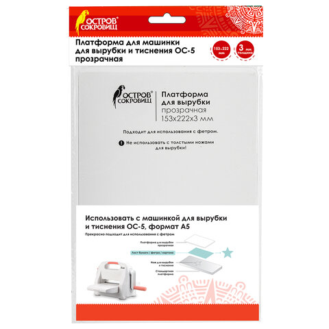 Прозрачная платформа для машинки для вырубки и тиснения ОСТРОВ СОКРОВИЩ используется совместно с машинкой для вырубки и тиснения ОС-5. Подходит для любых ножей для вырубки и папок для тиснения формата А5 и меньшего, особенно хорошо подходит для фетра.