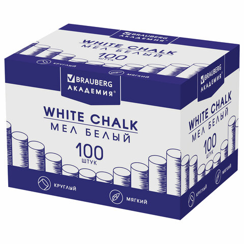 Мел белый круглый мягкий 100 штук, BRAUBERG "АКАДЕМИЯ", картонная упаковка (АЛГЕМ), 271146