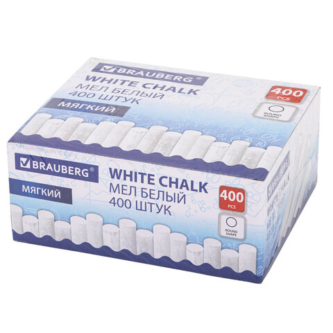Мел белый круглый мягкий, 400 штук, BRAUBERG, картонная упаковка, 272770