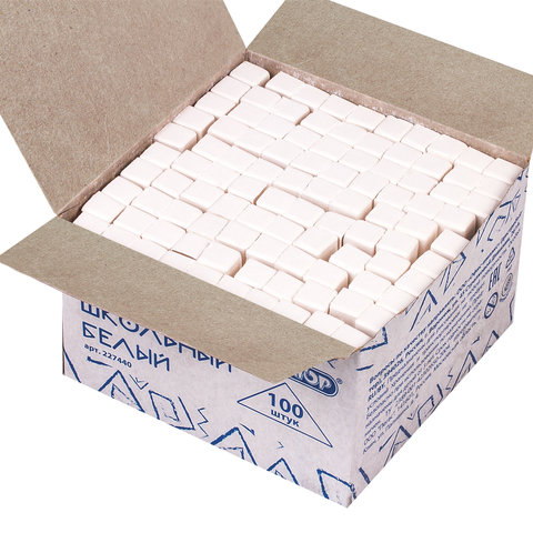 Мел белый квадратный 100 штук, ПИФАГОР, картонная упаковка, 227440