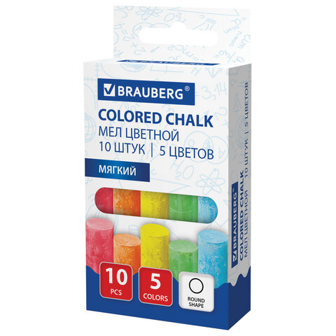 Мел цветной круглый мягкий 10 штук, 5 цветов, BRAUBERG, картонная упаковка, европодвес, 272767