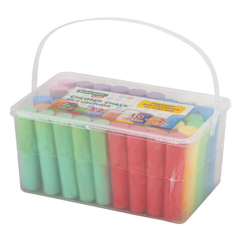 Мел в ведерке для рисования на асфальте 52 штуки, цветной круглый, BRAUBERG KIDS, 272774