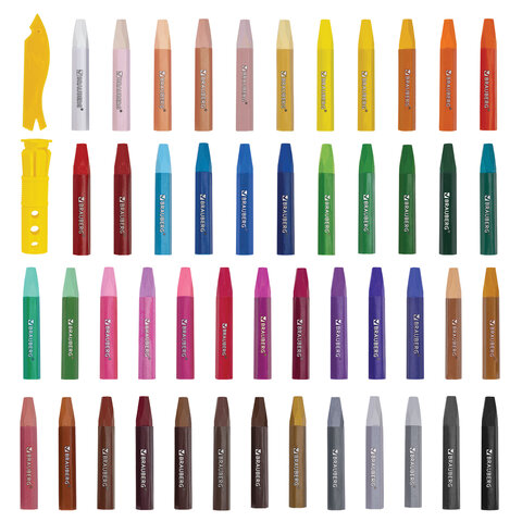 Пастель масляная восковые мелки утолщенные 48 цвета с точилкой, держателем и стеком, BRAUBERG PREMIUM, 272714