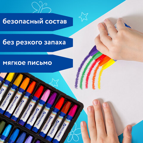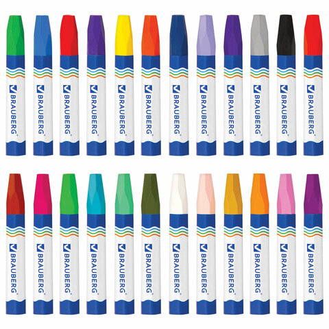 Восковые мелки утолщенные BRAUBERG, НАБОР 24 цвета, на масляной основе, яркие цвета, 222972