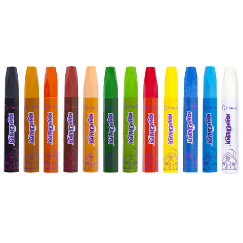 Восковые мелки утолщенные на масляной основе ЮНЛАНДИЯ "ДОМИКИ", 12 цветов, 273090