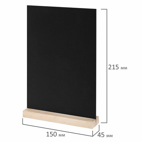 Табличка меловая настольная А5, вертикальная, на деревянной подставке, ПВХ, черная, BRAUBERG, 291299