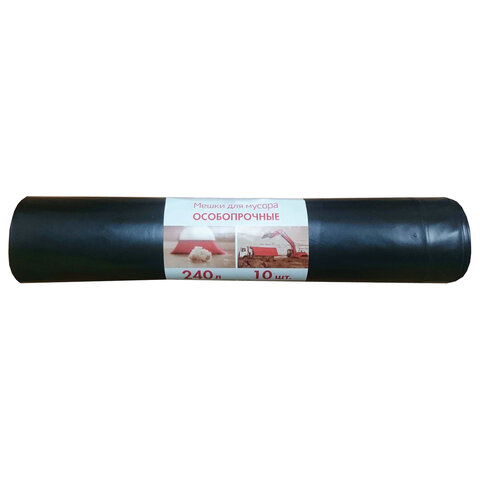 Мешки для мусора 240 л, черные, в рулоне 10 шт., ПВД, 100 мкм, 90х135 см, особо прочные, КБ, 3170