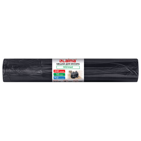 Мешки для мусора 240 л, черные, в рулоне 10 штук, прочные, ПВД 40 мкм, 90x125 см, LAIMA, 702683
