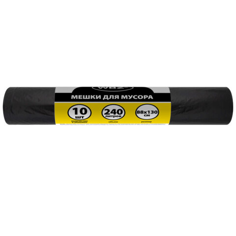 Мешки для мусора 240 л, черные в рулоне 10 штук, ПВД 50 мкм, 88x130 см, WBZ, 702680
