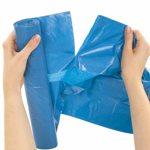 Мешки для мусора 60 л синие в рулоне 20 шт. особо прочные, ПВД 30 мкм, 60х70 см, LAIMA, 601382
