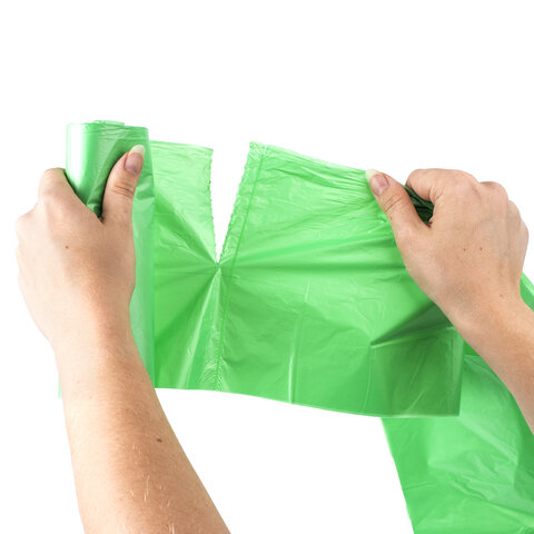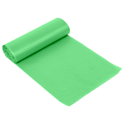 Мешки для мусора биоразлагаемые 60 л, зеленые, рулон 20 шт., ПНД 15 мкм, 60х70 см, ЛЮБАША, 608099