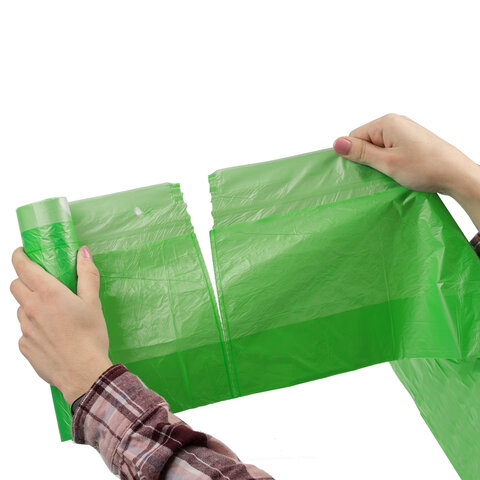 Мешки для мусора биоразлагаемые с завязками LAIMA "ULTRA" 35 л, рулон 20 шт., прочные, ПНД 15 мкм, 50х60 см, 607688