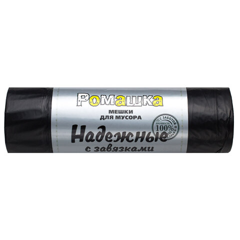 Мешки для мусора с завязками 35 л, в рулоне 15 шт., ПСД 18 мкм, 50x53 см, РОМАШКА НАДЕЖНЫЕ, ВЗ0351511