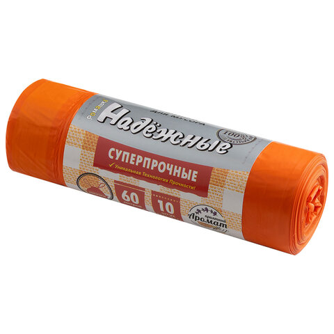 Мешки для мусора с завязками 60 л, оранжевые, в рулоне 10 шт., ПСД 23 мкм, 59х64 см, РОМАШКА НАДЕЖНЫЕ, ВЗ0601016О