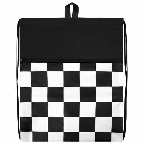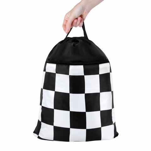 Мешок для обуви BRAUBERG БОЛЬШОЙ, с ручкой, карман на молнии, сетка, 49х41 см, "Black and White", 273452