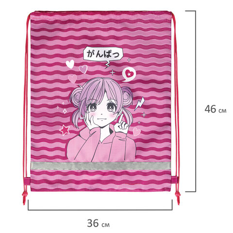 Мешок для обуви BRAUBERG KIDS, светоотражающая полоса, 46х36 см, "Anime style", 272391