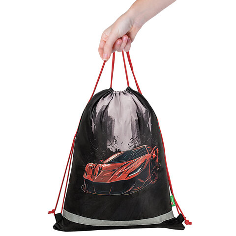 Мешок для обуви BRAUBERG KIDS, светоотражающая полоса, 46х36 см, "Red car", 272392