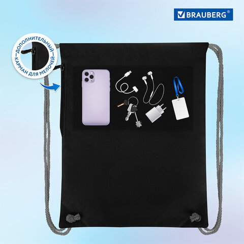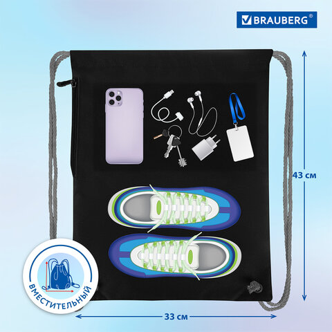 Мешок для обуви BRAUBERG PREMIUM – необходимый аксессуар в школе! Подходит для сменной обуви и спортивной формы. Затягивается двумя шнурками. Можно носить на плечах за спиной.