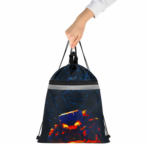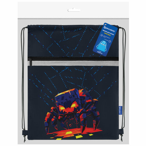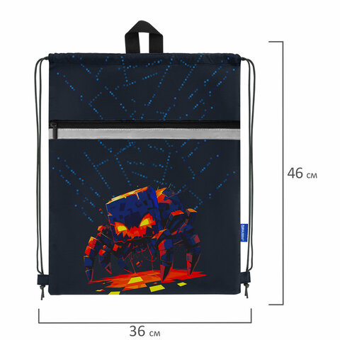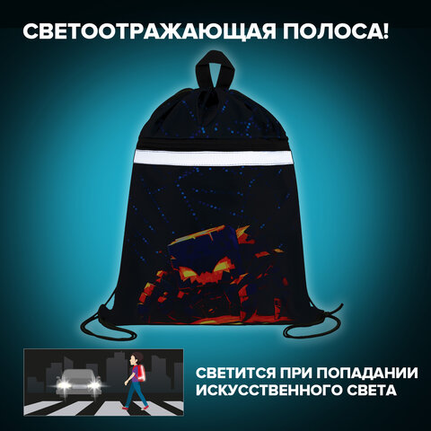 Мешок для обуви BRAUBERG, с петлей, светоотражающая полоса, 2 отделения, 46х36 см, "Fire spider", 273450
