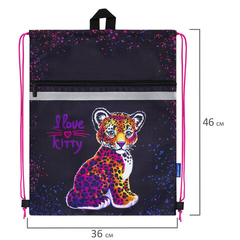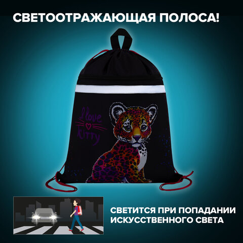 Мешок для обуви BRAUBERG, с петлей, светоотражающая полоса, 2 отделения, 46х36 см, Leopard, 272395
