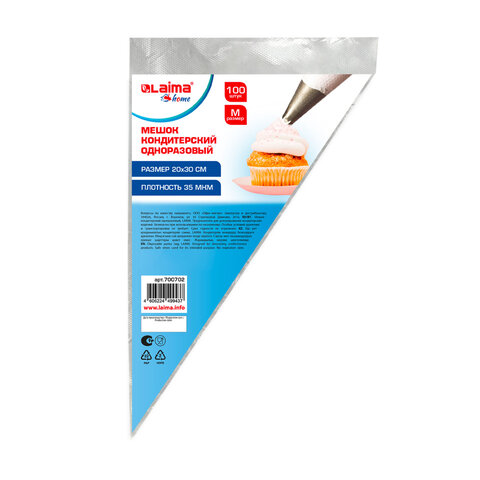 Мешок кондитерский одноразовый 20х30 см, размер M, КОМПЛЕКТ 100 штук, 35 мкм, LAIMA Home, 700702
