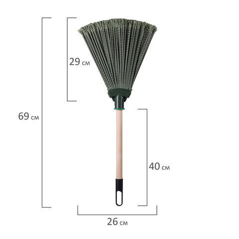 Веник синтетический веерный 29х26 см, деревянный черенок 40 см, еврорезьба, LAIMA EXPERT, 601830