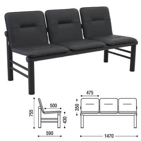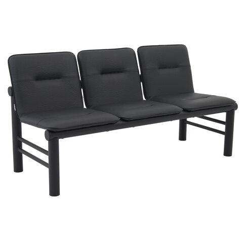 Кресло для посетителей трехсекционное "Троя",1470х590х755 мм, черный каркас, кожзам черный, СМ 105-03 К01