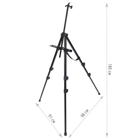 Мольберт алюминиевый BRAUBERG ART CLASSIC, УСИЛЕННЫЙ, тренога, переносной, разлож. 98x180x91, 191281