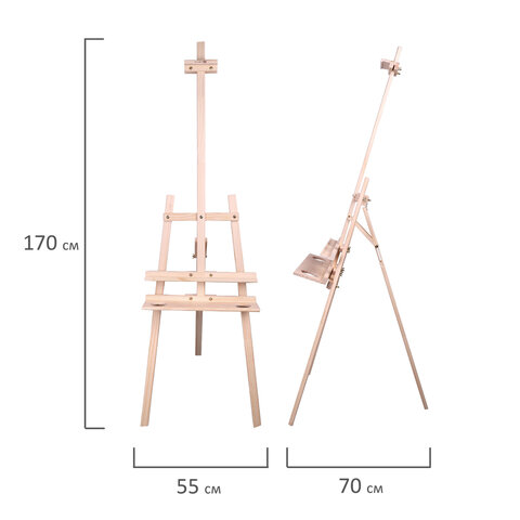 Мольберт напольный из сосны Лира с полкой, 170х55х70 см, высота холста до 107 см, BRAUBERG ART CLASSIC, 192261