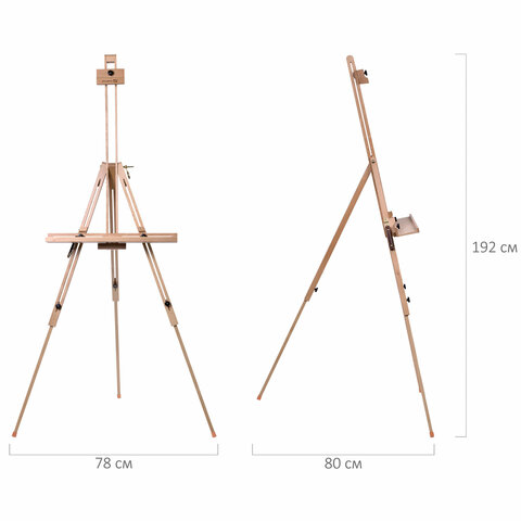 Мольберт полевой-тренога, бук, с полкой, высота 132-192 см, высота холста 112 см, BRAUBERG ART, 192262