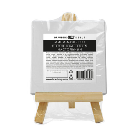 Настольный мини-мольберт с холстом 8х8 см, BRAUBERG ART DEBUT, сосна, хлопок, 192679