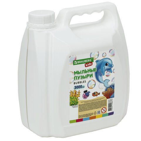 Мыльные пузыри BRAUBERG KIDS представляют собой мыльный раствор в пластиковой канистре объемом 3000 мл.