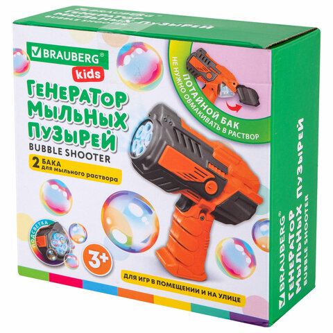 Генератор мыльных пузырей BRAUBERG KIDS доставит ребенку массу удовольствия и поможет отлично развлечься на любом празднике. Игры с мыльными пузырями развивают координацию движений и учат следить за движущимися предметами.