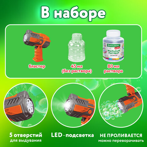 Мыльные пузыри Бластер Генератор с потайным баком, раствор 80 мл, BRAUBERG KIDS, 665148