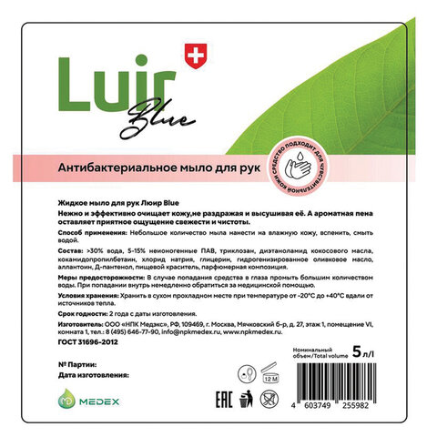 Жидкое мыло ЛЮИР с антибактериальным эффектом, содержащее специальные добавки, смягчающие и увлажняющие кожу рук, оказывающие противовоспалительное и ранозаживляющее действие.