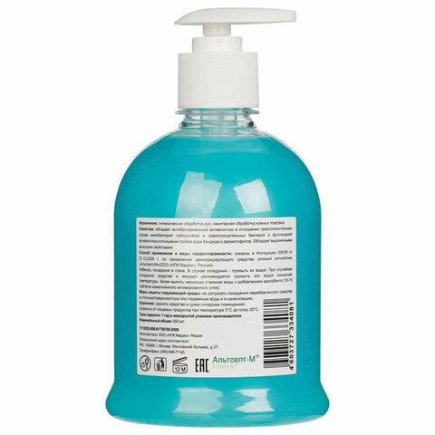 Мыло жидкое дезинфицирующее 500 мл АЛЬТСЕПТ М, увлажняющее, дозатор