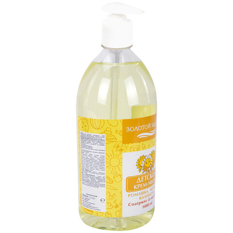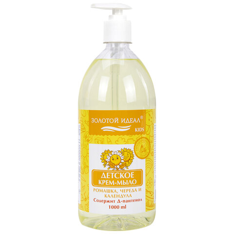 Мыло-крем жидкое гипоаллергенное 1 л, ЗОЛОТОЙ ИДЕАЛ KIDS "Ромашка, череда и календула", дозатор, 609430