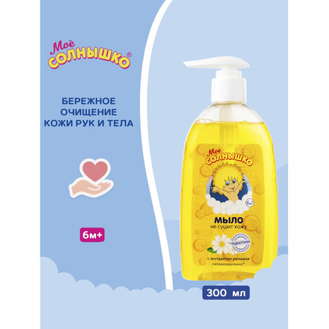 Мыло жидкое детское гипоаллергенное с экстрактом ромашки 300 мл, МОЕ СОЛНЫШКО, дозатор, 1702