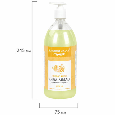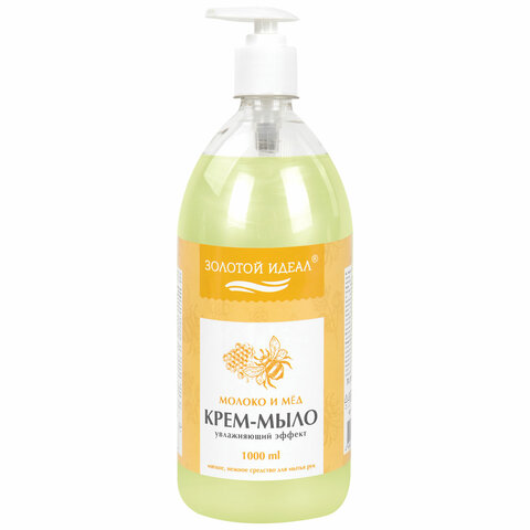 Мыло-крем жидкое 1 л, ЗОЛОТОЙ ИДЕАЛ "Молоко и мёд", дозатор, 609427