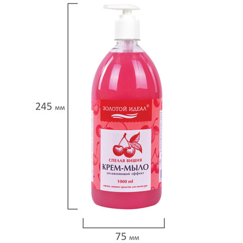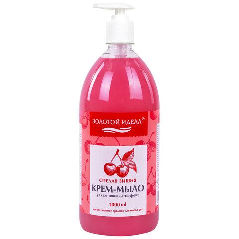 Мыло-крем жидкое 1 л, ЗОЛОТОЙ ИДЕАЛ "Спелая вишня", дозатор, 609428