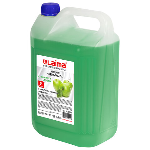 Мыло-крем жидкое 5 л, ЛАЙМА PROFESSIONAL "Яблоко", с антибактериальным эффектом, 600189