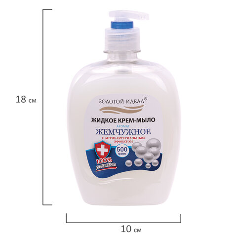 Мыло-крем жидкое 500 г ЗОЛОТОЙ ИДЕАЛ "Жемчужное", с антибактериальным эффектом, дозатор, 606414