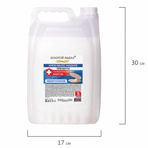 Мыло-крем жидкое с АНТИБАКТЕРИАЛЬНЫМ ЭФФЕКТОМ, 5 л, ЗОЛОТОЙ ИДЕАЛ "Премиум Жемчужное", 607495